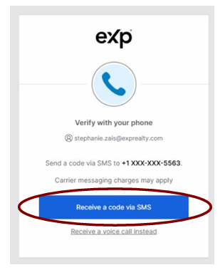 6. Click the “Receive a code via SMS” button.