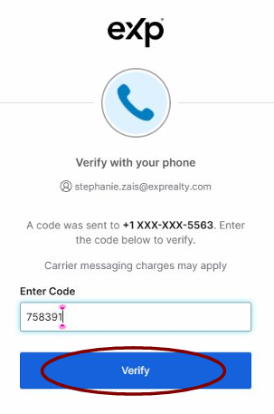 7. Check your phone for a 6-digit code, then enter that code and click “Verify.”
